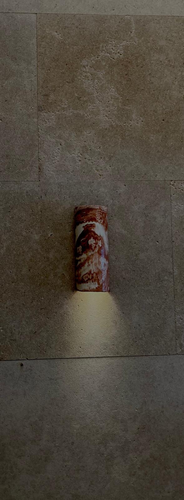 Chaque applique est unique, avec ses nuances naturelles, ses veines, ses contrastes — comme une coupe dans la matière.
